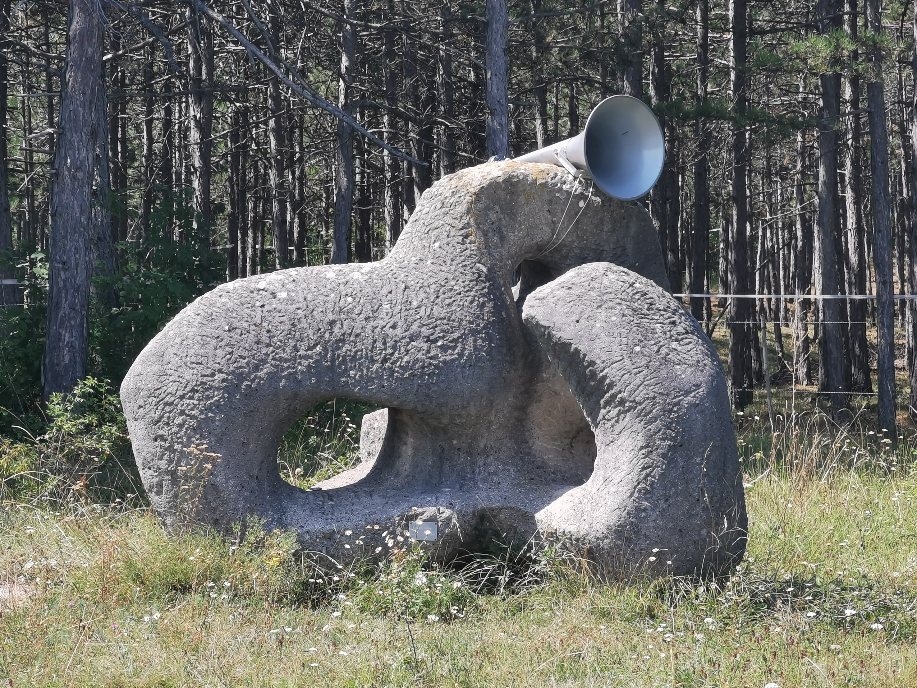 The 7-channel sound installation combines all the ambient sounds of the semi-arid grassland on the former communal land with an electronically generated sound structure. The listening experience extends over large parts of the site, with the fusion of synthetic and “natural” sounds at the center of attention.