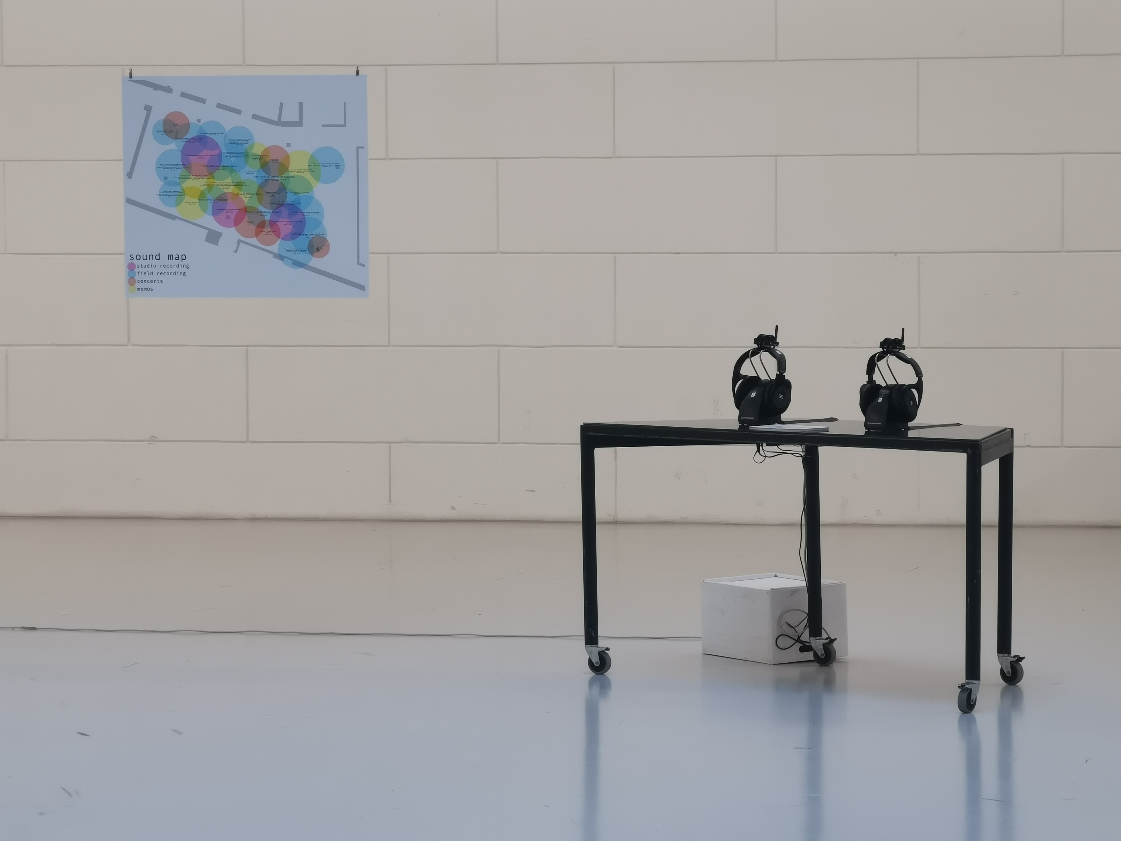 The archive consists of field recordings and recordings of concerts as well as recording sessions in collaboration with local artists. It presents itself as a spatial composition and thus as a walkable environment of distributed sounds in space. How these sounds are experienced, results from the individual paths of each person through the spatial composition. Slow and aimless searching and letting oneself be attracted by the upcoming sound bubbles create individual listening experiences for the respective visitors.